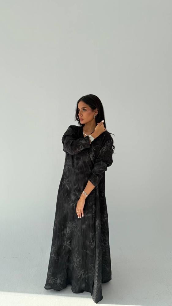 عباية تالة مصنوعة من قماش مكسر فاخر بلمسة ناعمة تمنح برودة مثالية في أجواء الصيف.